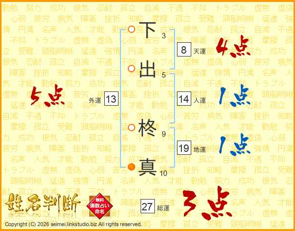 下出柊真さんの外運は13画の5点!