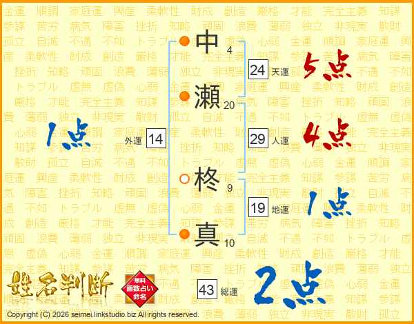 中瀬柊真さんの総運は43画の2点!