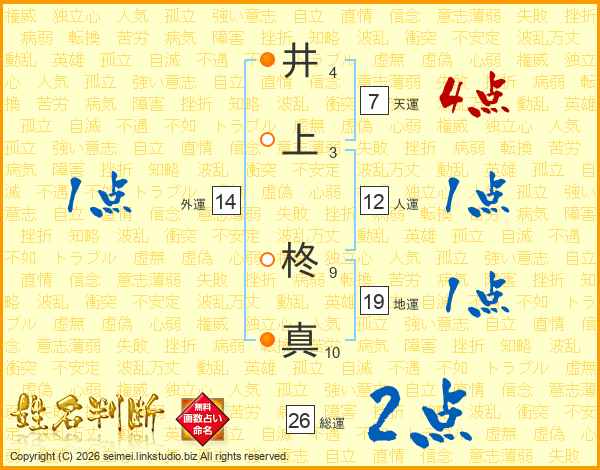 井上柊真さんの総運は26画の2点!