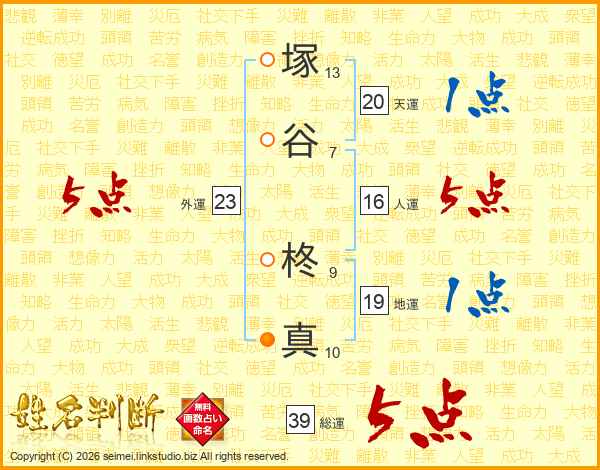 塚谷柊真さんの総運は39画の5点!