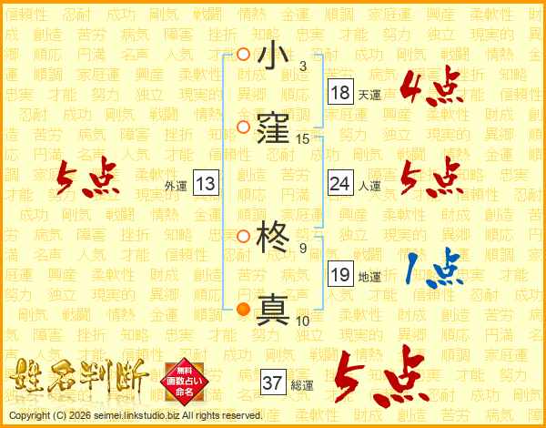 小窪柊真さんの総運は37画の5点!