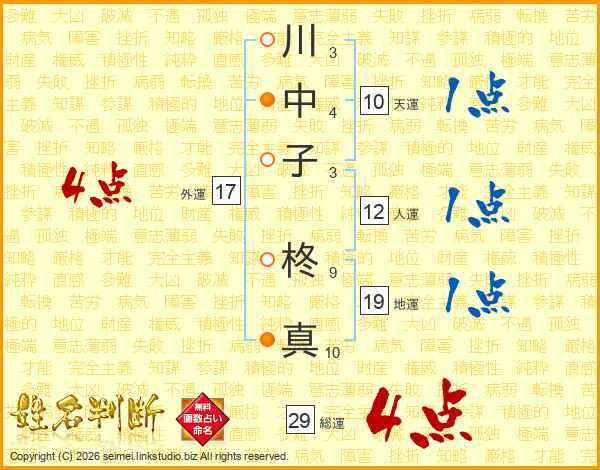 川中子柊真さんの総運は29画の4点!