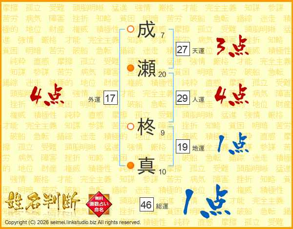 成瀬柊真さんの総運は46画の1点!