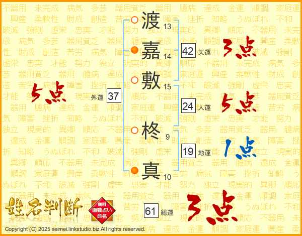渡嘉敷柊真さんの外運は37画の5点!