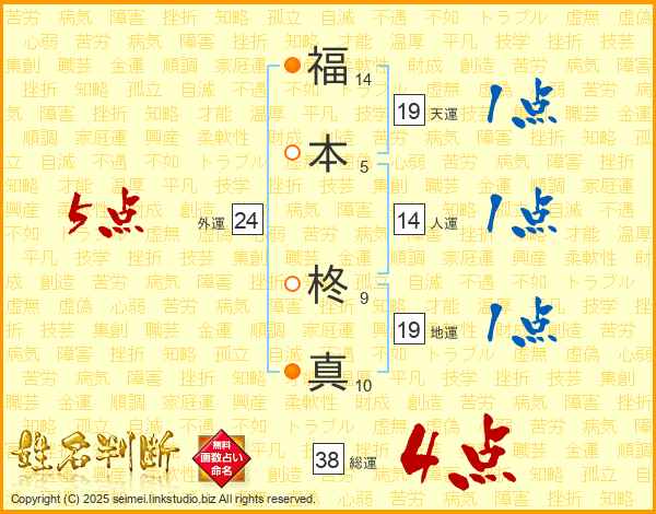 福本柊真さんの総運は38画の4点!