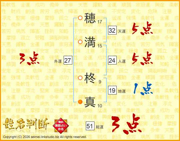 穂満柊真さんの総運は51画の3点!