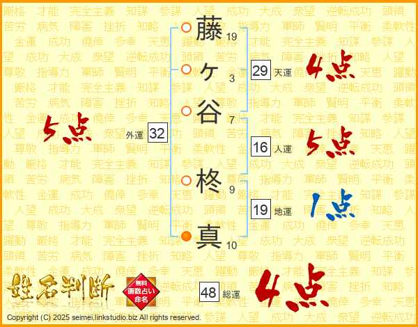 藤ヶ谷柊真さんの総運は48画の4点!