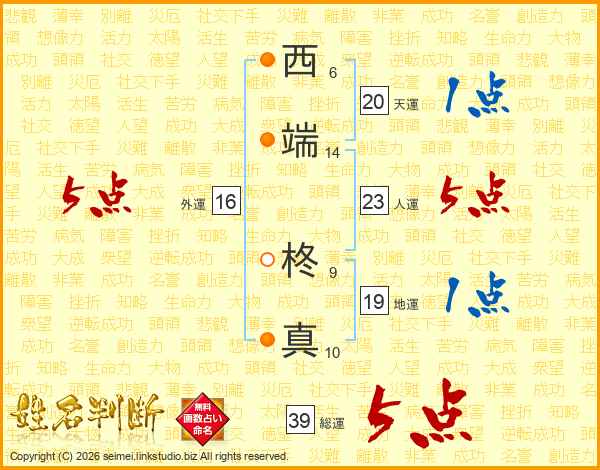 西端柊真さんの総運は39画の5点!
