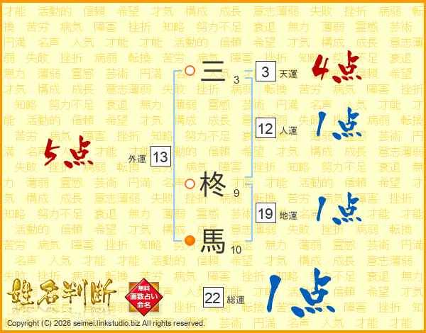 三柊馬さんの総運は22画の1点!