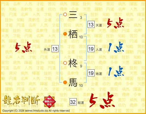 三栖柊馬さんの総運は32画の5点!