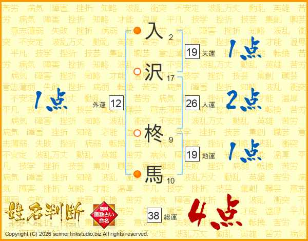 入沢柊馬さんの総運は38画の4点!
