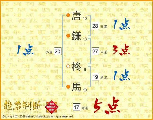 唐鎌柊馬さんの総運は47画の5点!