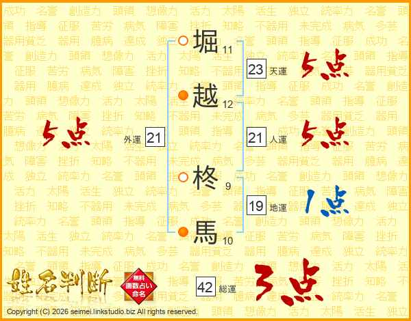 堀越柊馬さんの外運は21画の5点!