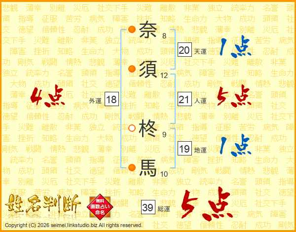 奈須柊馬さんの総運は39画の5点!