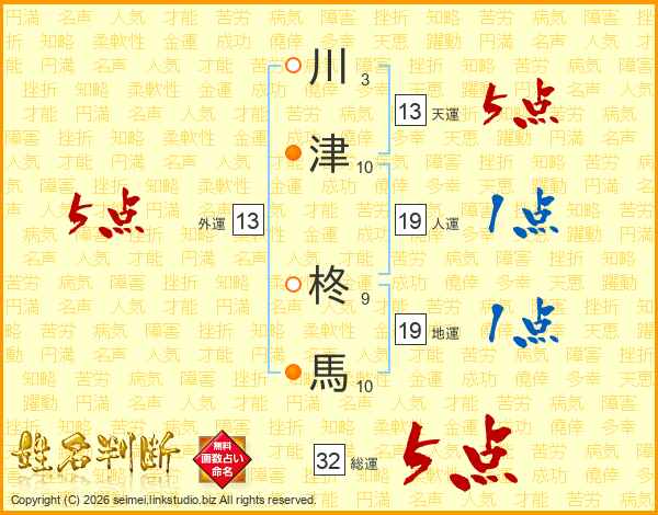 川津柊馬さんの総運は32画の5点!