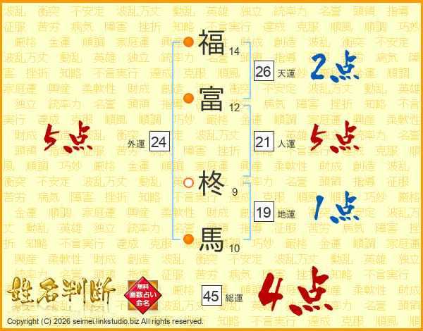 福富柊馬さんの総運は45画の4点!