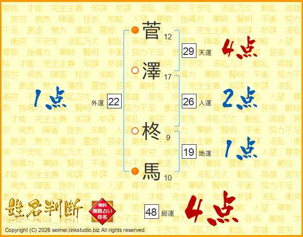 菅澤柊馬さんの総運は48画の4点!