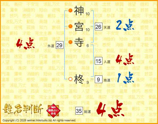 神宮寺柊さんの外運は29画の4点!