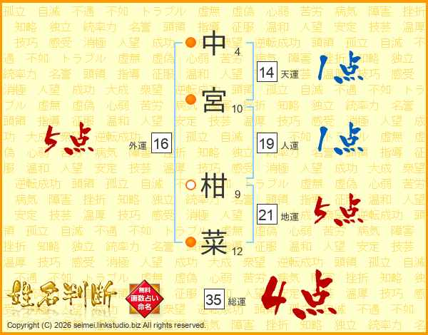 中宮柑菜さんの総運は35画の4点!