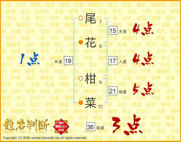 尾(7画)花(8画) 柑(9画)菜(12画)