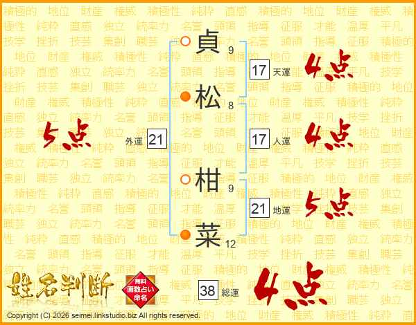 貞(9画)松(8画) 柑(9画)菜(12画)