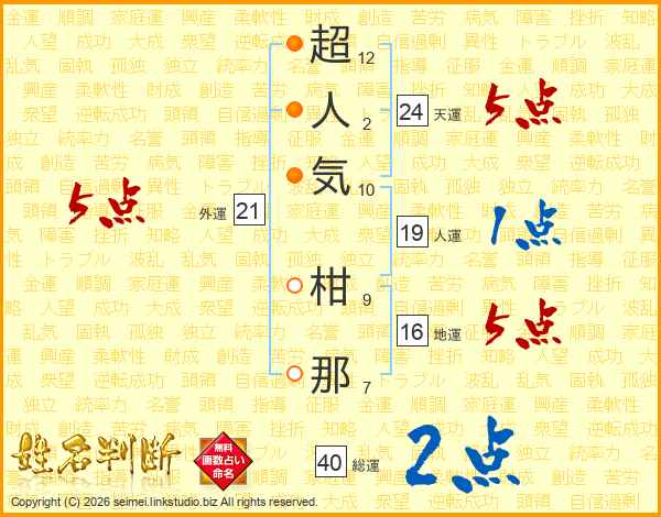 超人気柑那さんの総運は40画の2点!