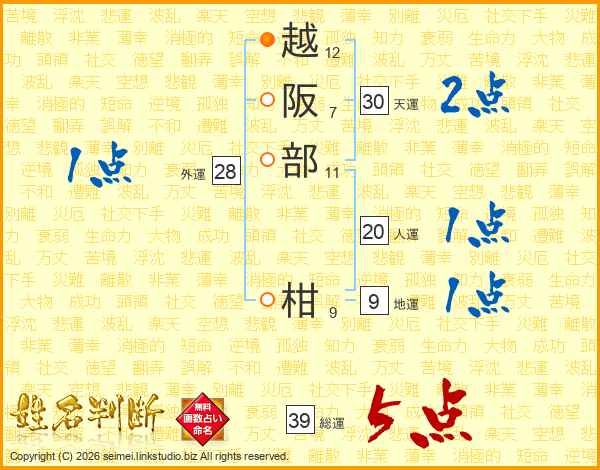 越阪部柑さんの総運は39画の5点!