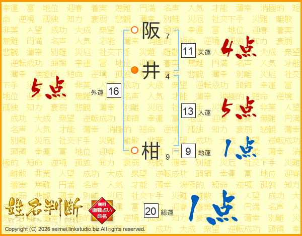 阪(7画)井(4画) 柑(9画)