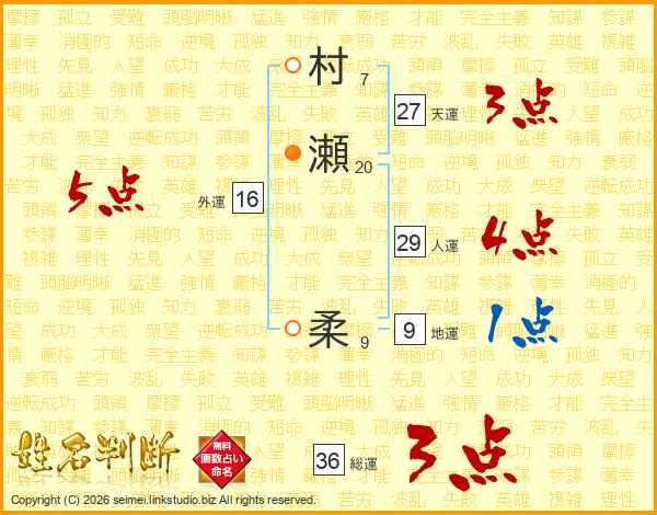 村瀬柔さんの総運は36画の3点!
