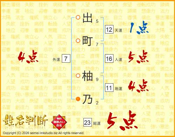 出町柚乃さんの総運は23画の5点!