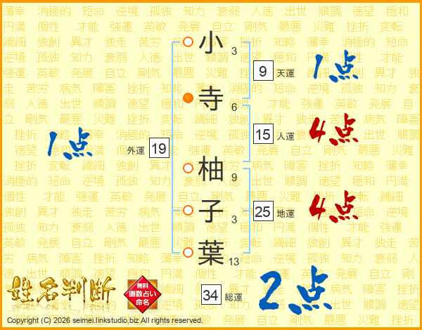 小寺柚子葉さんの総運は34画の2点!