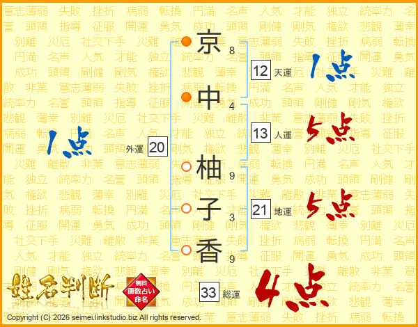 京中柚子香さんの総運は33画の4点!