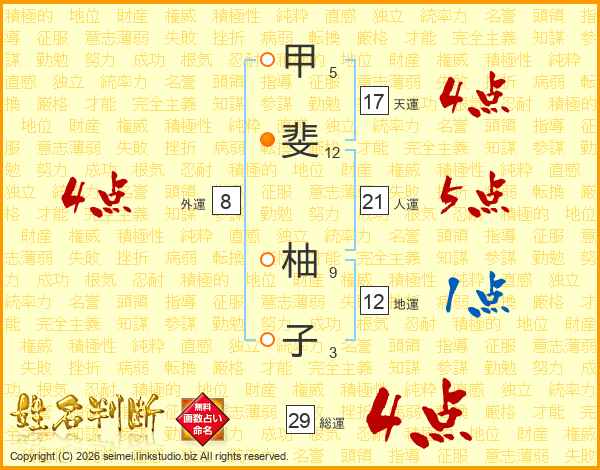 甲斐柚子さんの総運は29画の4点!