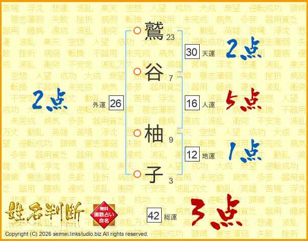 鷲谷柚子さんの総運は42画の3点!