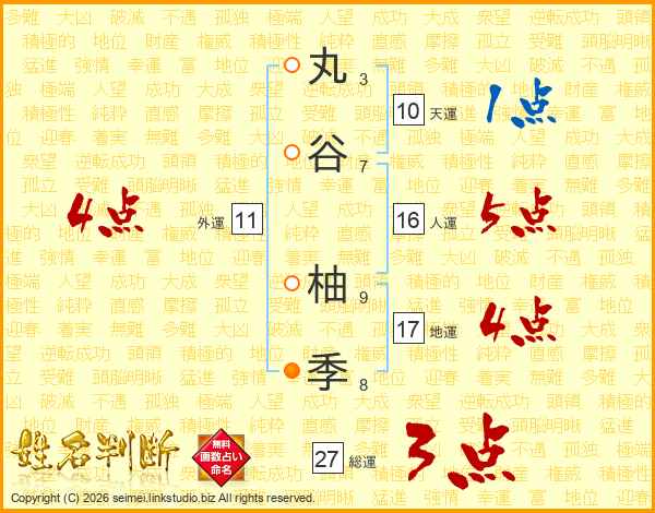 丸(3画)谷(7画) 柚(9画)季(8画)