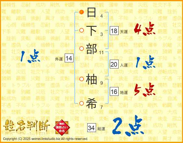 日(4画)下(3画)部(11画) 柚(9画)希(7画)