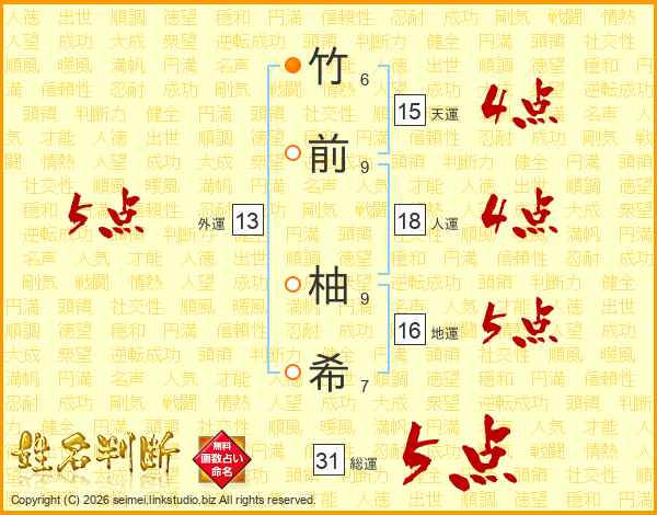 竹前柚希さんの総運は31画の5点!