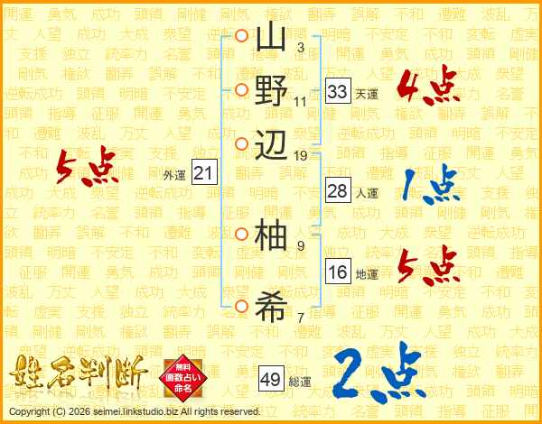 山野辺柚希さんの天運は33画の4点!