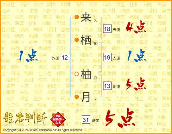 来栖柚月さんの総運は31画の5点!