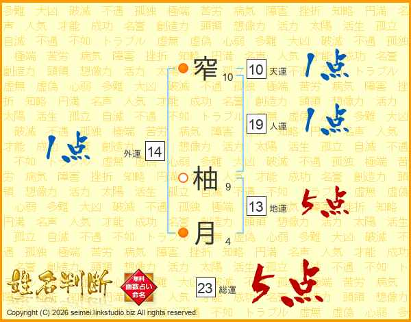窄柚月さんの総運は23画の5点!