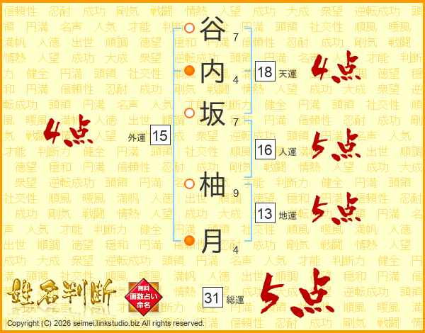 谷内坂柚月さんの総運は31画の5点!