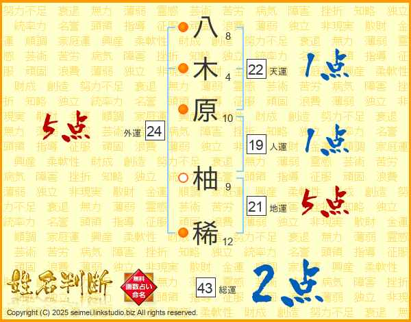 八木原柚稀さんの地運は21画の5点!
