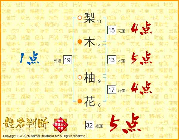 梨木柚花さんの総運は32画の5点!