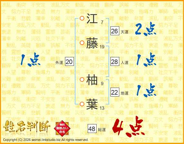 江藤柚葉さんの総運は48画の4点!