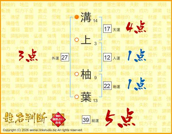 溝上柚葉さんの総運は39画の5点!