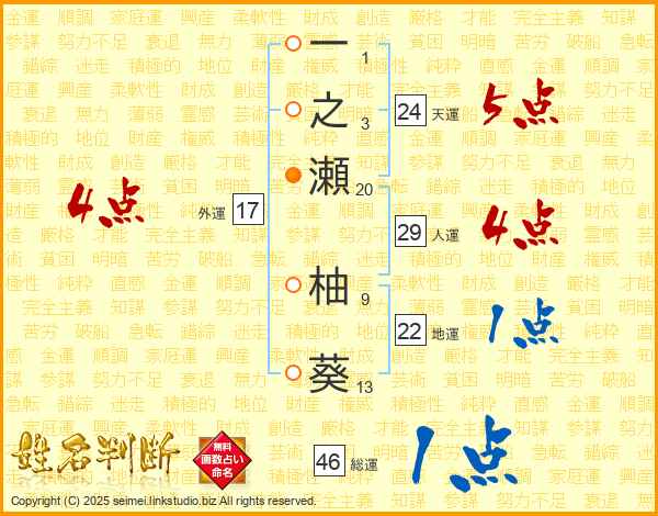 一之瀬柚葵さんの総運は46画の1点!