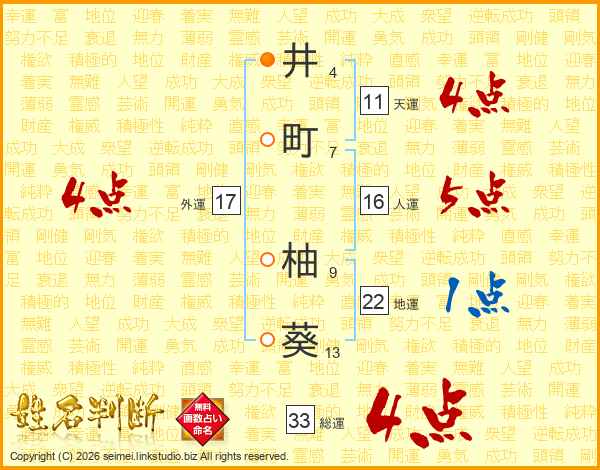 井町柚葵さんの総運は33画の4点!