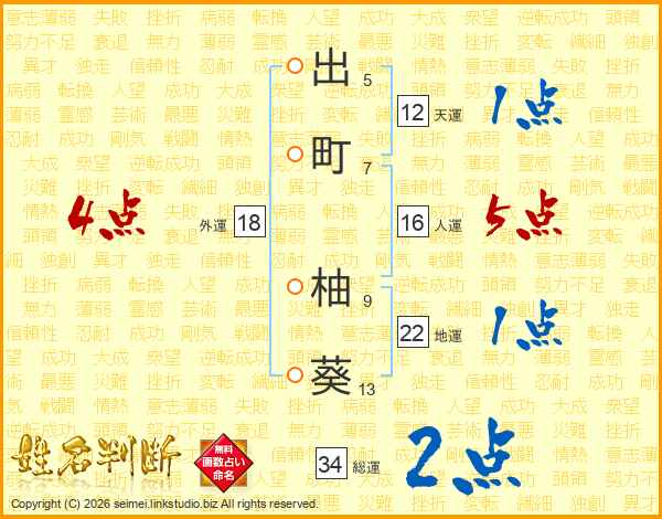 出町柚葵さんの総運は34画の2点!
