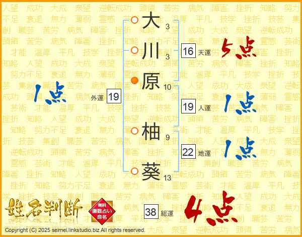 大川原柚葵さんの総運は38画の4点!