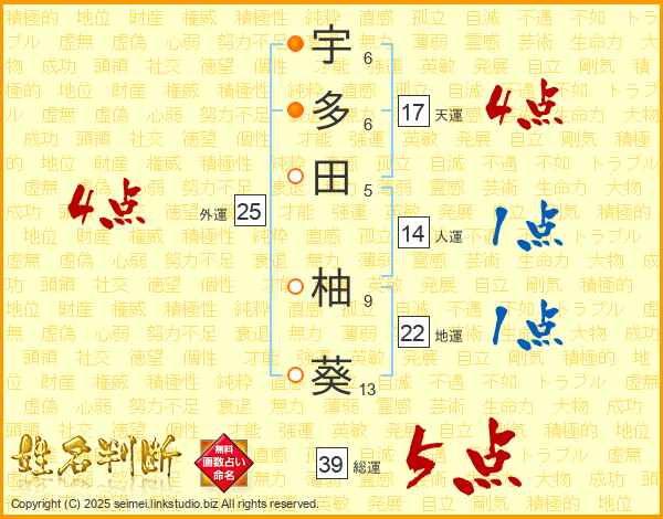 宇多田柚葵さんの外運は25画の4点!
